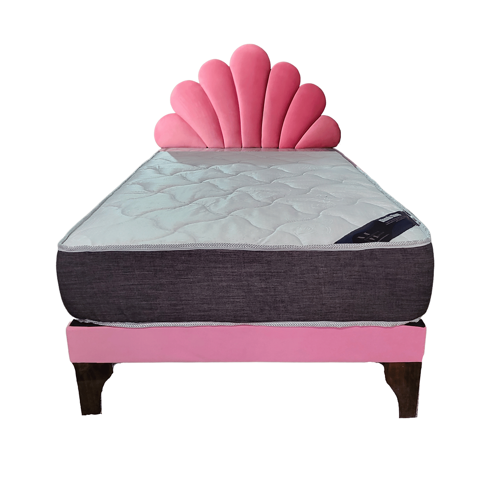Cama 1 plaza y media +Colchón +Respaldo diseño Infantil Coral
